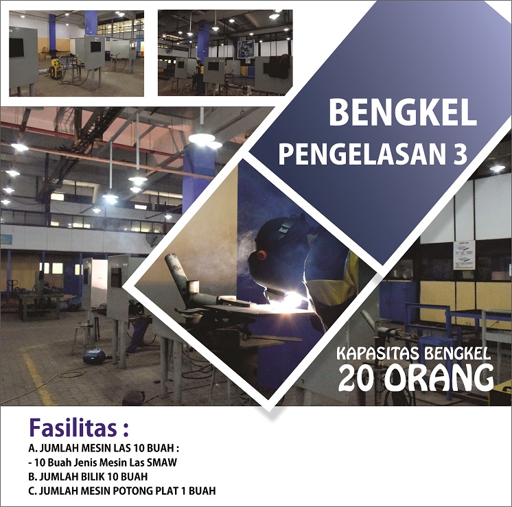 | 13. | Bengkel Pengelasan 3 | 10 buah Mesin Las SMAW, 10 buah bilik , 1 buah mesin potong plat | 20 | Detail |